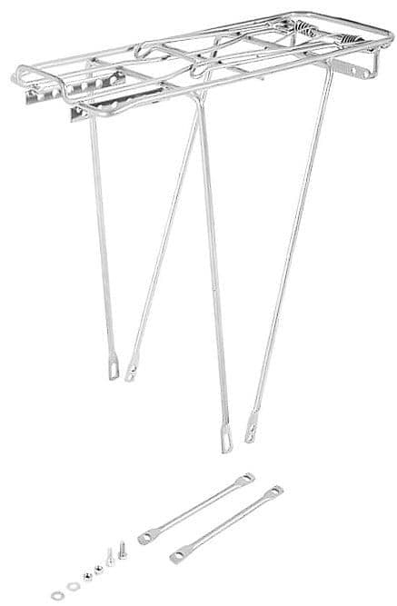 Багажник крепится над задним колесом велосипеда.