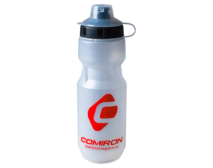 Бутылка для воды COMIRON "Advance" с пылевой крышкой и одноцветным принтом. Прозрачная. 850 мл.