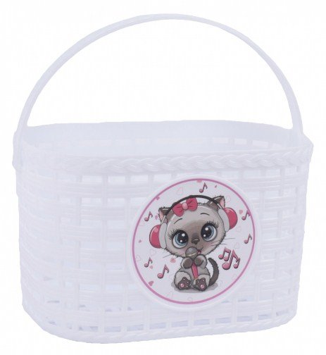 —Корзинка детская на руль для вел-да с ручкой, белая, 200x140x125мм, "Китти"