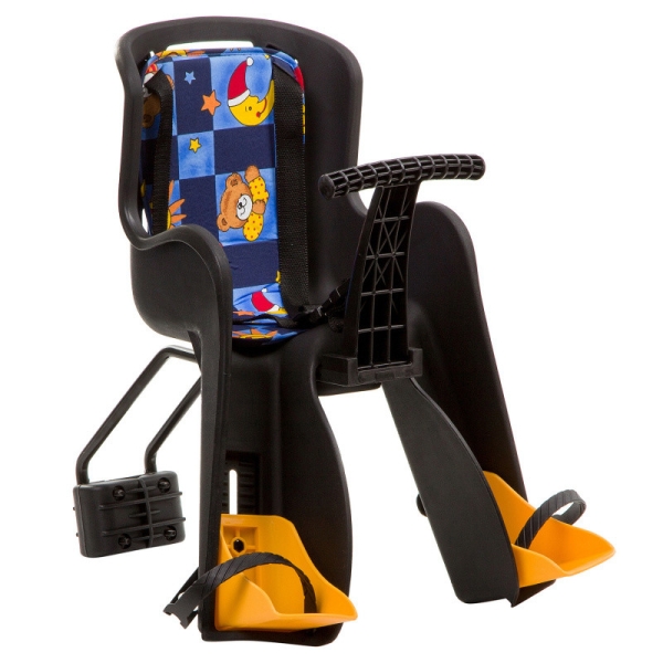 Фронтальное детское кресло, которое размещается на верхней трубе рамы. Кресло имеет ударопрочный, анатомический пластиковый корпус и оснащено регулируемым четырёхточечным ремнём безопасности. Усиленный механизм крепления позволит снимать и устанавливать велокресло за максимально короткое время. Максимально допустимая нагрузка 16 кг.