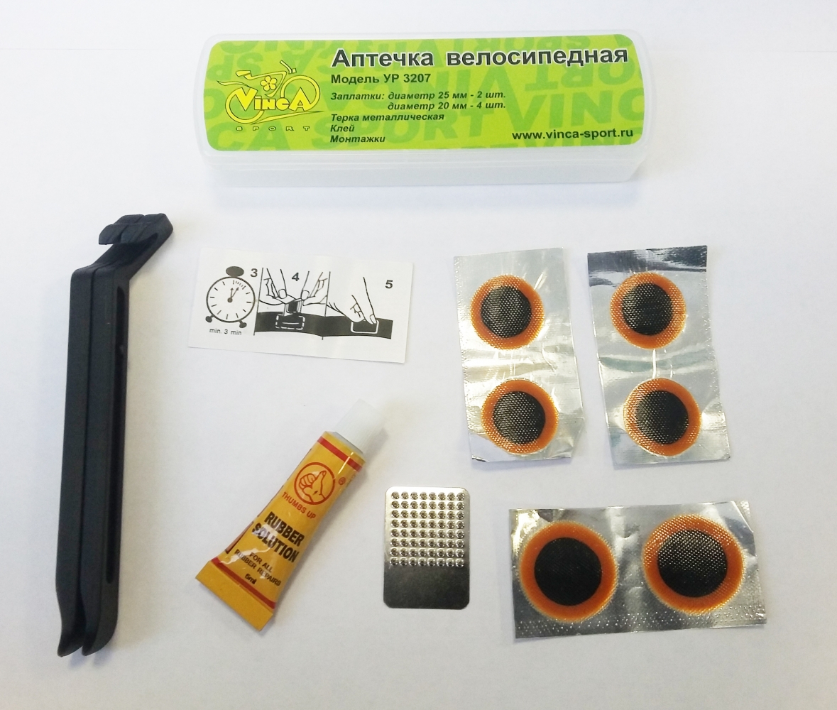 —Велоаптечка VINCA SPORT (заплатки 25мм-2шт,20мм-4шт, терка,клей,монтажки)