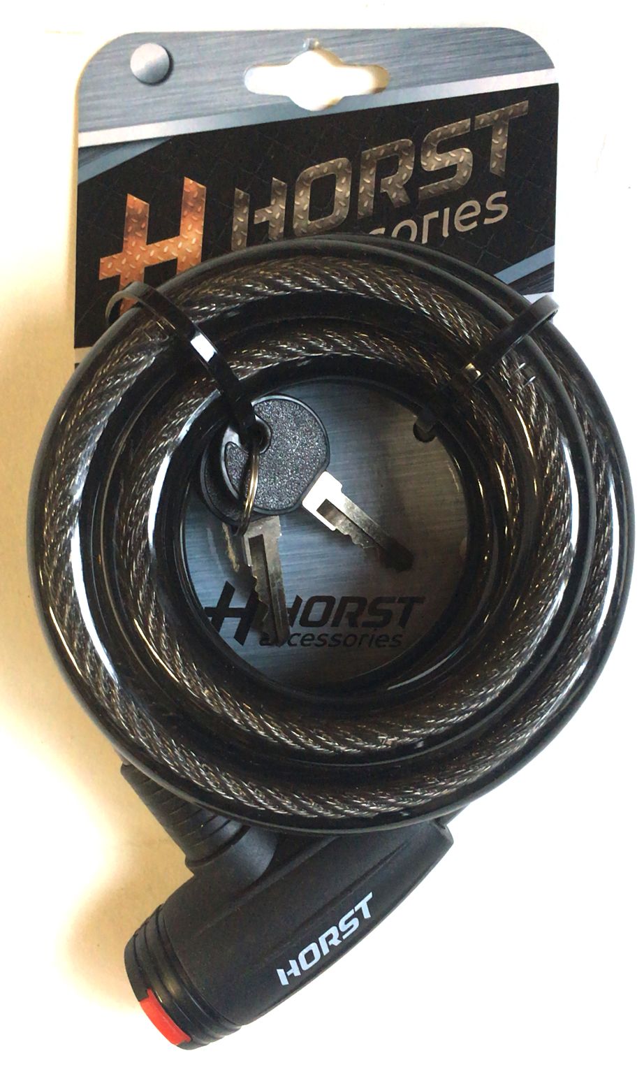 —Замок 09-100171 вело 15х1500мм автом. на ключе с защитой черный HORST