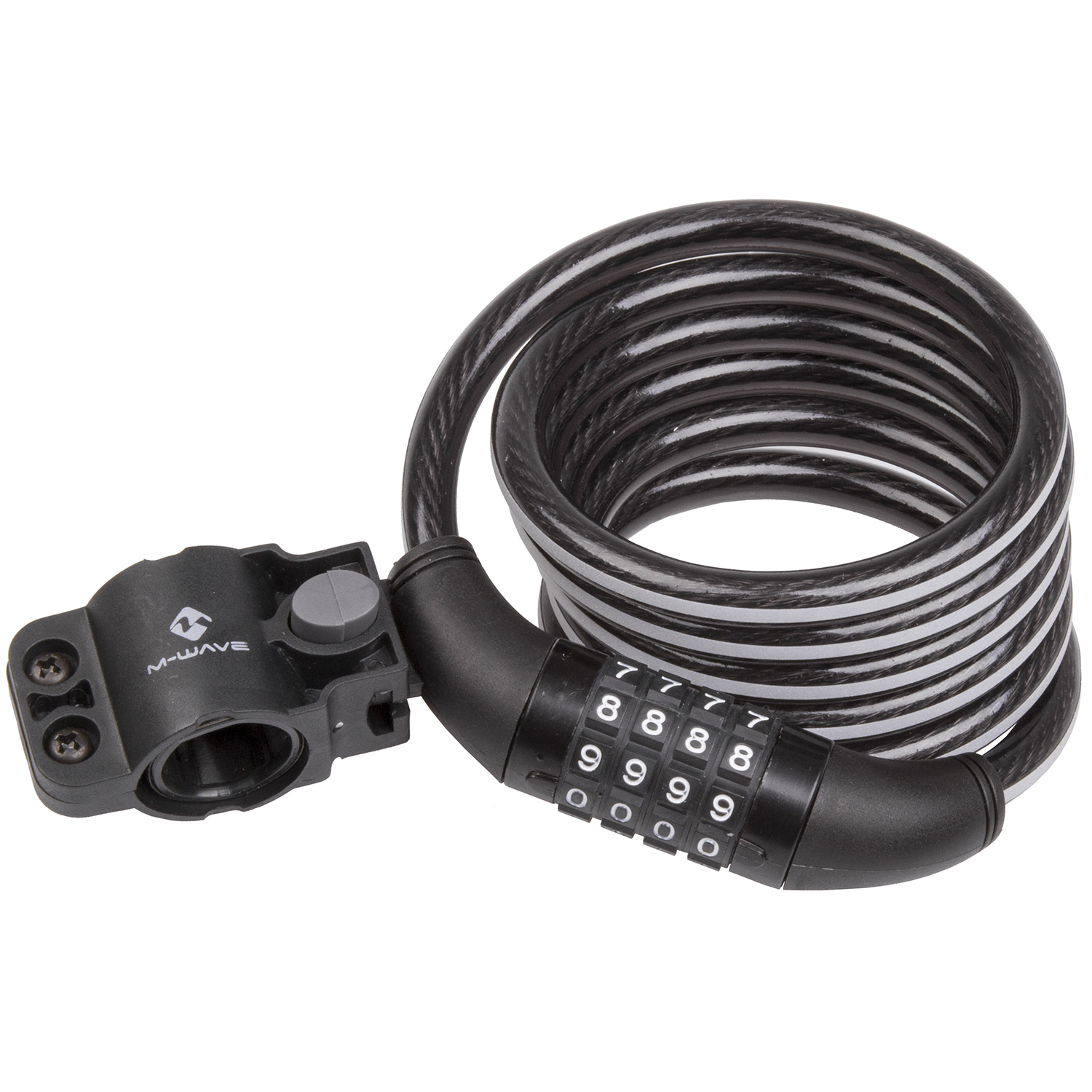 Замок 5-230962 вело кодовый (4 разряда) 10х1500мм черный с отражающей полосой, с крепежом M-WAVE NEW