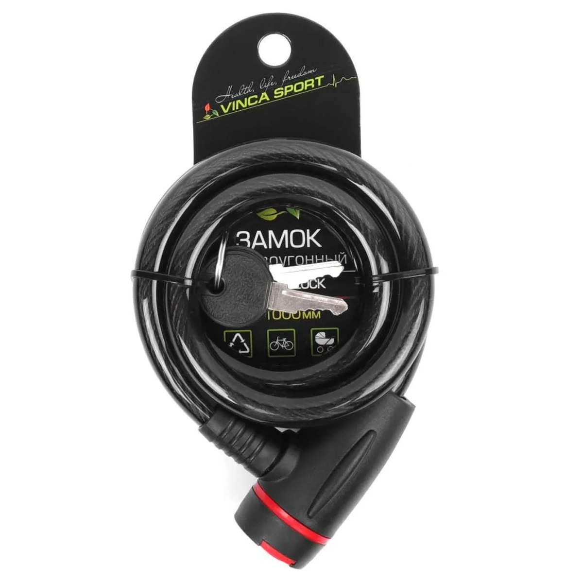 Замок велосипедный 12*1000мм, черн., защита замка от влаги. инд.уп.Vinca Sport
