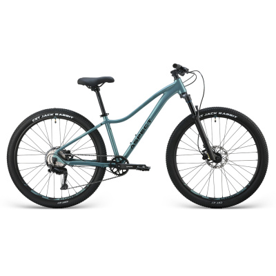 Женский горный велосипед с оборудованием любительского класса Shimano, 9 скоростей. Технические особенности: легкая алюминиевая рама (сплав 6061, гидроформинг, двойной баттинг труб, скрытая прокладка тросов, гладкие сварные швы, конусный рулевой стакан ZS, кареточный стакан BSA, крепление калипера PM), амортизационная вилка GTMRK 367 AIR/HLO (воздушно-масляная, гидравлическая блокировка, ход 100 мм, эксцентрик, анодированные алюминиевые ноги 32 мм из сплава 7075, бушинги металл-тефлон), двойные алюминиевые обода Code D23 (под ниппель AV), дисковые гидравлические тормоза Tektro M275 (роторы 160/160 мм). Подходит для активной езды по различным дорогам и пересеченной местности. Диаметр колес - 27,5 дюймов. Вес - 14,2 кг.