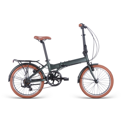 Складной прогулочный велосипед с оборудованием начального класса Shimano, 7 скоростей. Технические особенности: складная алюминиевая рама ALU 6061 Folding, жесткая стальная вилка, двойные алюминиевые обода Alloy Double Wall, надежные ободные тормоза Tektro V-brake, защита цепи, длинные крылья, багажник, подножка, катафоты, звонок, чехол для переноски. Подходит для прогулочного катания в городских условиях. Диаметр колес - 20 дюймов. Вес - 12,4 кг