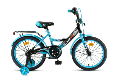Рама: стальная, 18" размер колеса, задний ножной тормоз, передний ободной тормоз, крашенный обод, крылья, спицы, багажник, звонок, стальная защита цепи, боковые колеса.