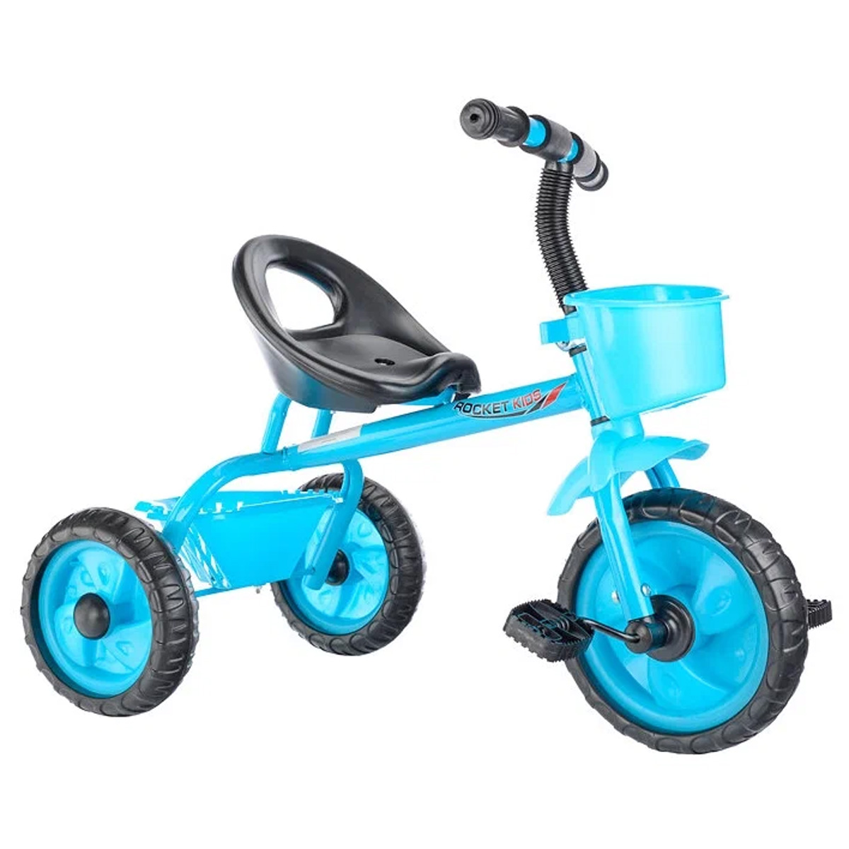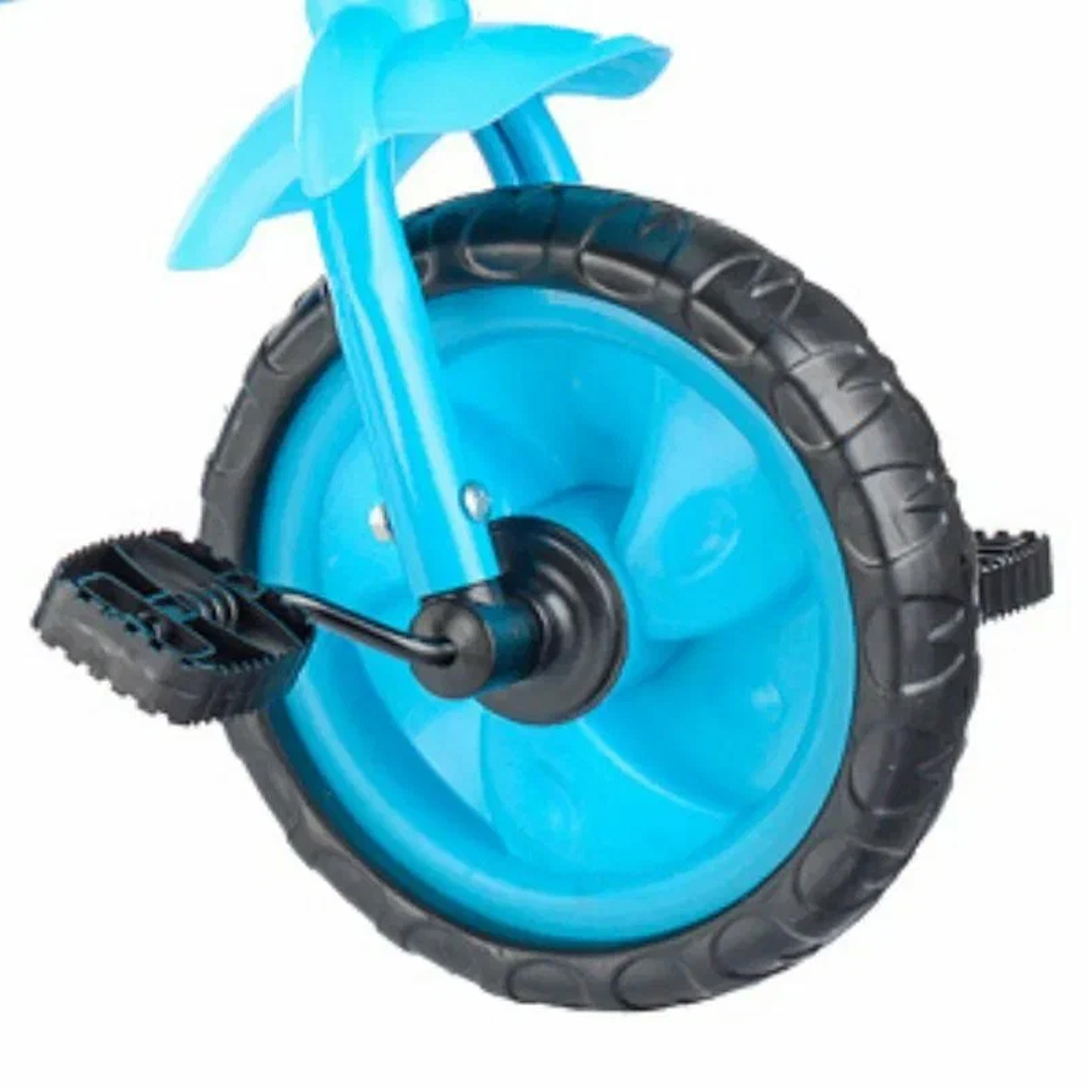 Колеса велосипеда изготовлены из цельного материала EVA, который обеспечивает мягкость и комфорт при езде. Диаметр переднего колеса составляет 24 см, а задних - 19 см. Это позволяет ребенку легко управлять велосипедом и чувствовать себя уверенно на дороге.