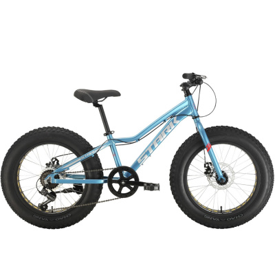 Детский фэтбайк с навесным оборудованием начального класса Shimano, 7 скоростей. Технические особенности: алюминиевая рама AL-6061, жесткая стальная вилка Stark Rigid, усиленные обода Qijian MX-80S, дисковые механические тормоза APSE ADC-16 (роторы 160/140 мм), подножка. Подходит для прогулочной езды по различным дорогам и пересеченной местности. Диаметр колес - 20 дюймов. Вес - 15,9 кг.