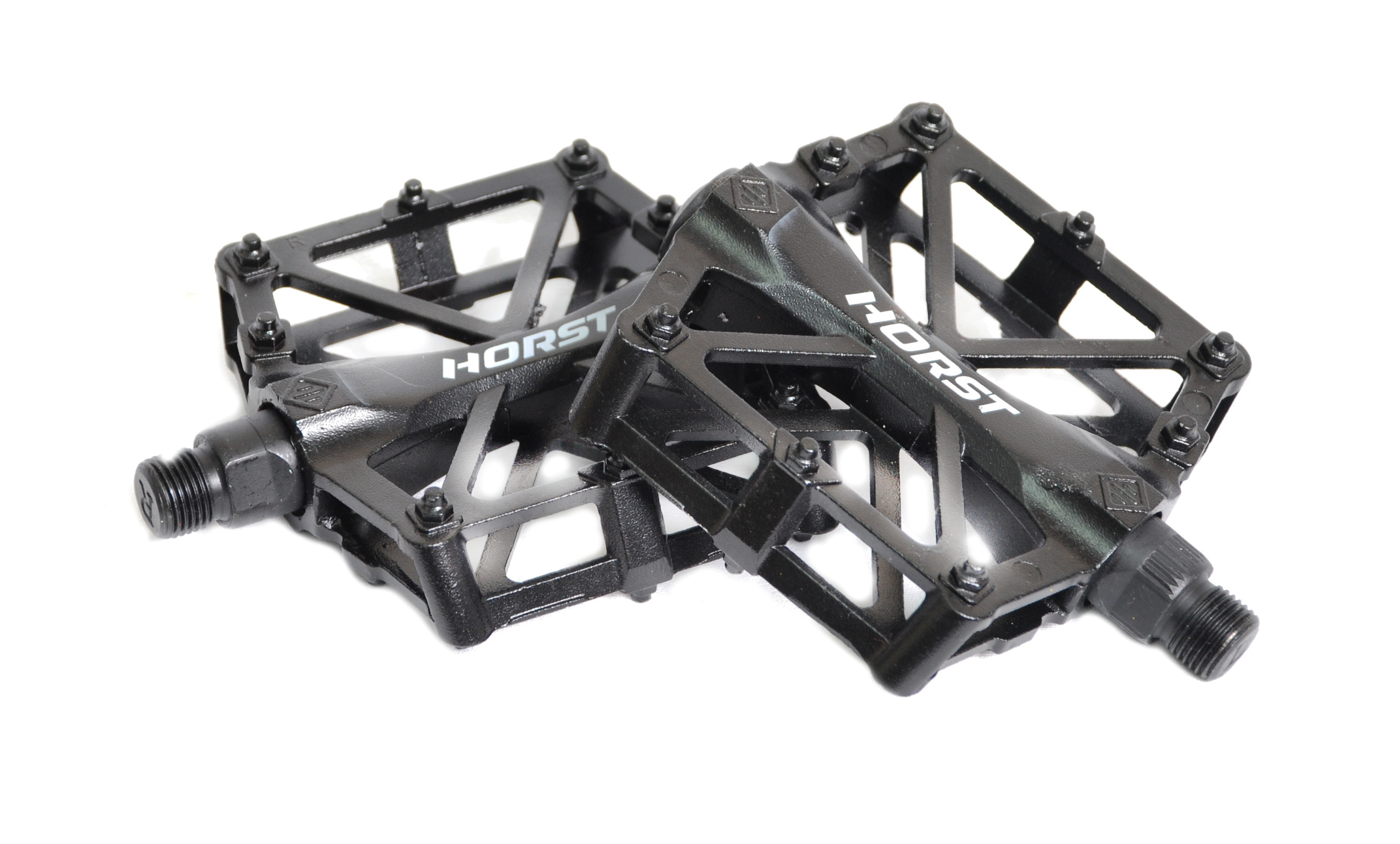 —Педали 00-170831 алюм. H32 широкие литые с шипами. резьба 1/2", 92*95*15мм, 388 г черные HORST NEW