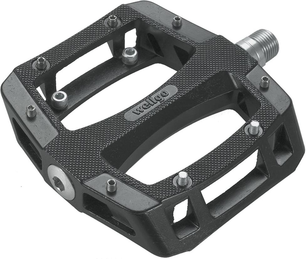 Педали алюминиевые Wellgo LU-A52, размер платформы 109.5 x 106 x 28.40 мм, фрезерованный корпус, промподшипники, ось - cr-mo, Ф 9/16", 16 сменных шипов, назначение ВМХ, Downhill, Freeride, цвет серый, вес 445 грамм (пара).