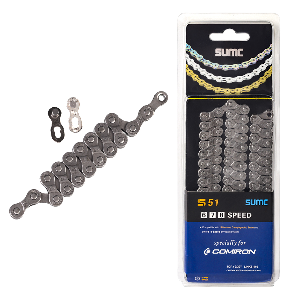 Фаски на пластинах для улучшения переключения. Основанная на технологии быстрого и точного переключения передач кассет Hyperglide цепь SUMC быстро и свободно переходит на следующую передачу уверенно, плавно и без проскальзывания.
