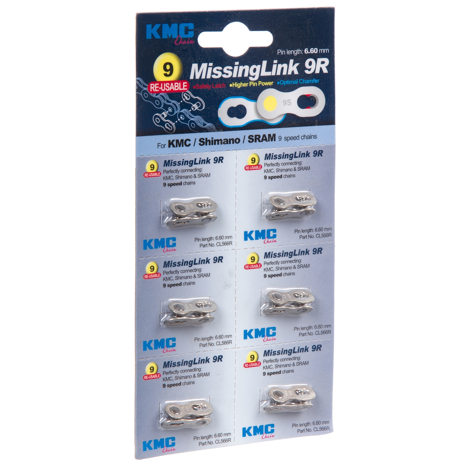 —Замок цепи KMC , модель CL566R-NP для 9 скоростей (6 шт. на блистере)