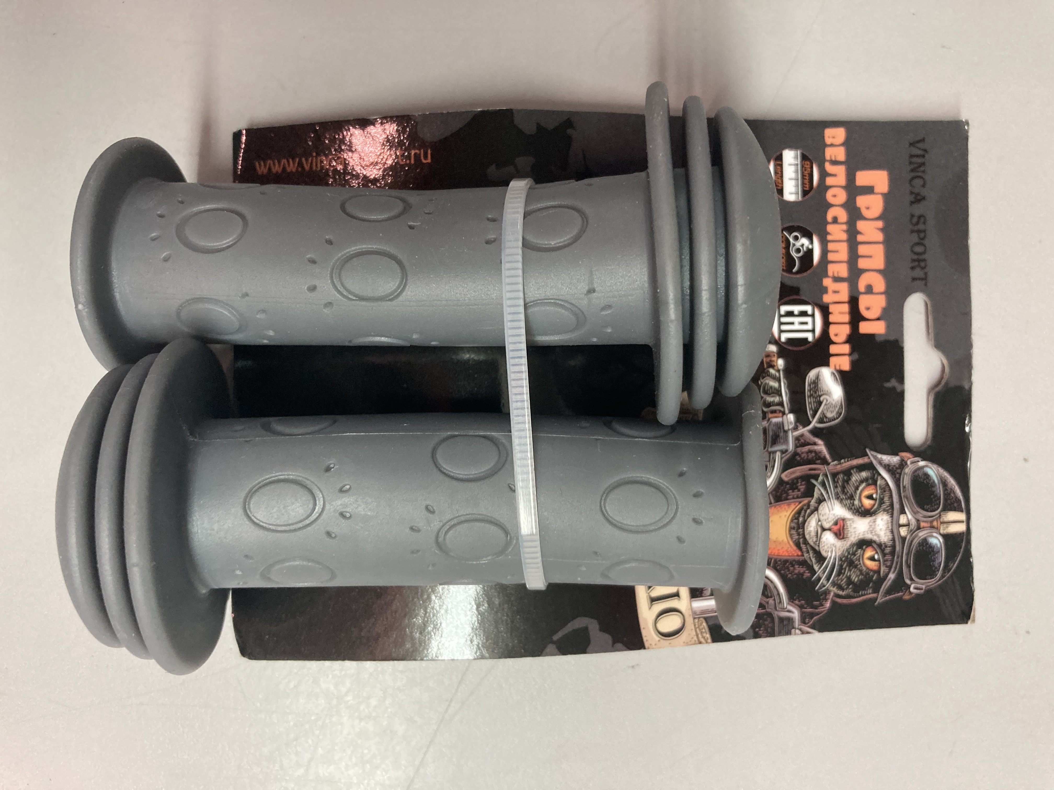 —Грипсы детские, резиновые, длина 102мм, серые, инд.уп.Vinca Sport