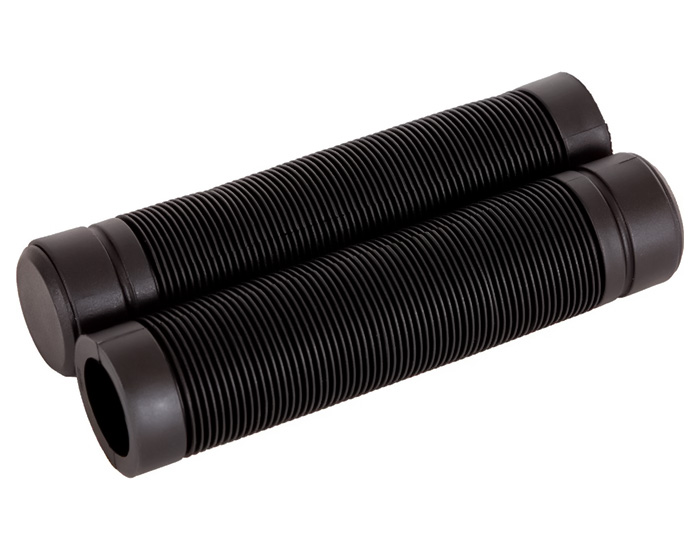 Грипсы, выполненные из высококачественной резины, препятствуют соскальзыванию рук, гасят вибрацию, не натирают ладони и в целом делают поездку более комфортной. Они одеваются на концы руля и их можно менять по мере изношенности.