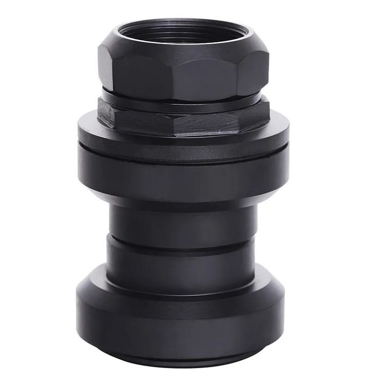 Рулевая колонка Kenli KL-B201AC резьбовая 1" с внешними чашками на промподшипниках черная для резьбового рулевого штока. Комплектация: контргайка, шайба, верхний конус, нижний конус, 2 внешние чашки, 2 шариковых подшипника с сепараторами