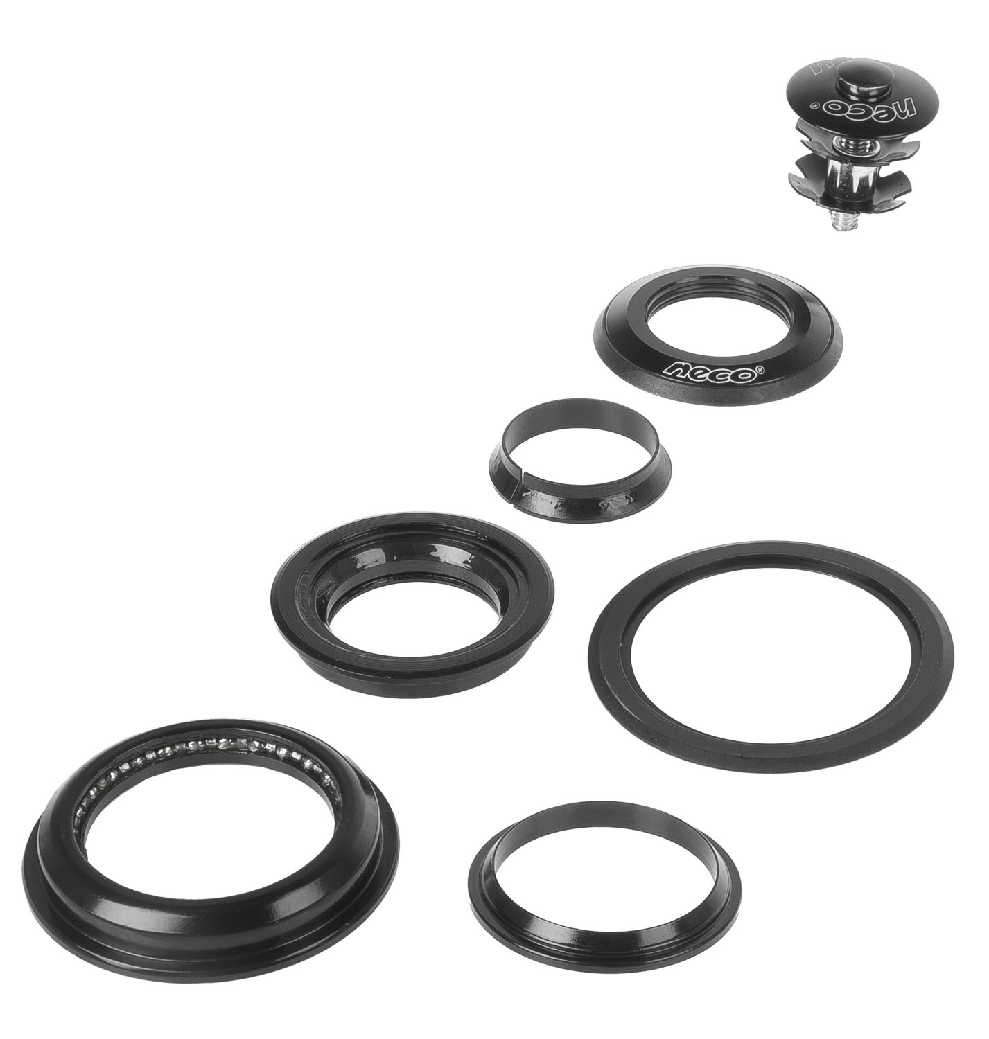 Рулевой набор 5-390322 сталь полуинтегр. полукартр. 1 1/8"-1,5" 28,5/44/55/39,8мм черный NECO