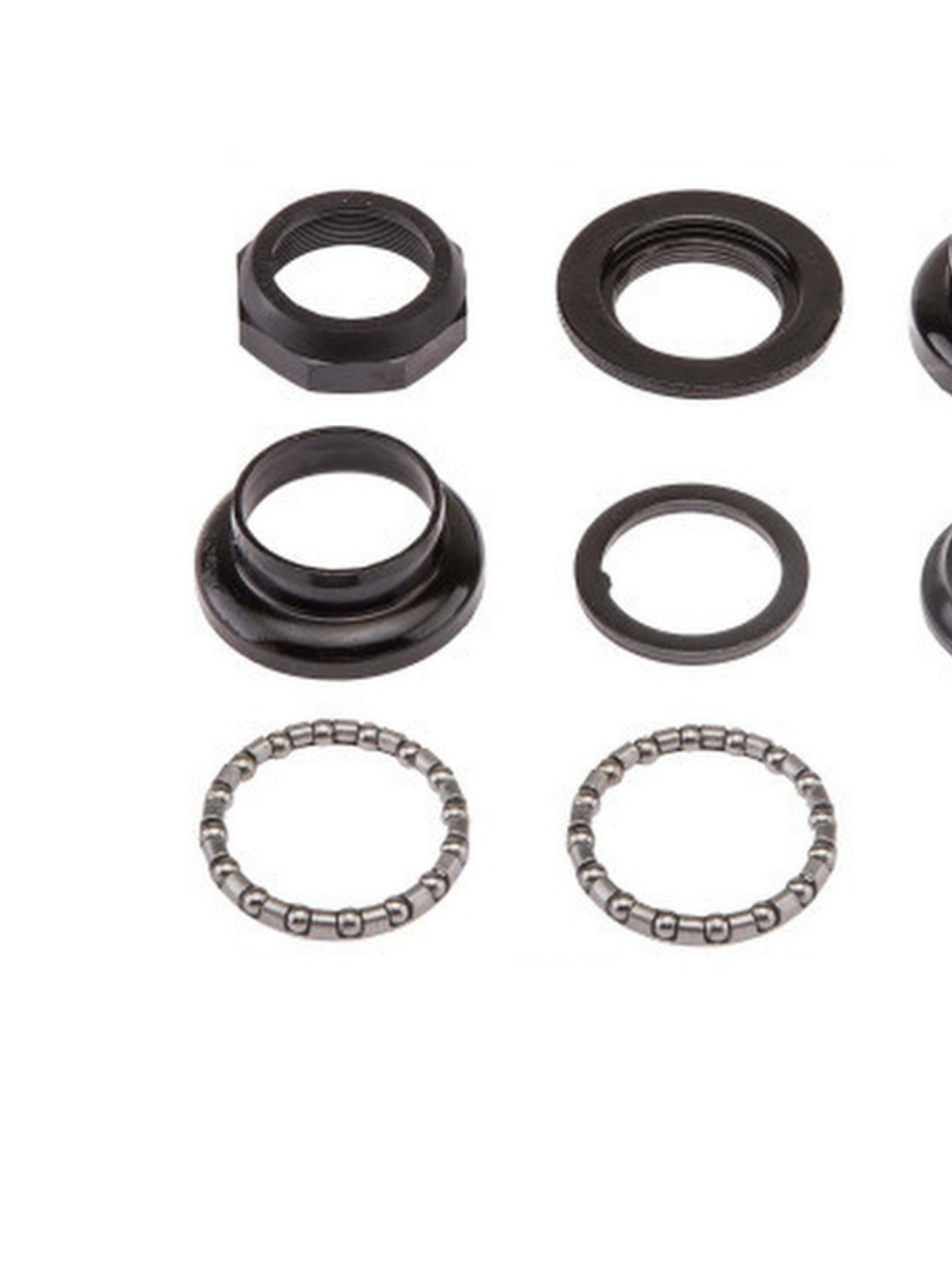 Детали рулевой колонки FP-H501 1" черный/170098. Рулевая колонка FP-H501 резьбовая, для штока вилки с резьбой 1"х24tpi, диаметр патрона выноса руля/рулевого стакана/кольца короны - 22.2/30/27 мм, общая высота 35 мм, стальная, черная.