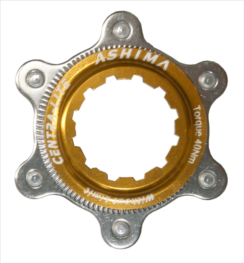 —Адаптер ASHIMA золотой, крепит 6-болт ротор на Center Lock Shimano