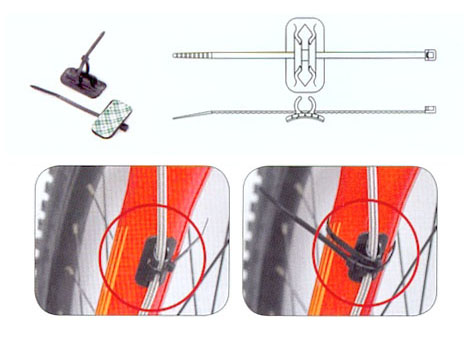 Крепеж гидролинии к вилке/раме,пластик.,наклеивается и зажимается хомутом.YZD-2004