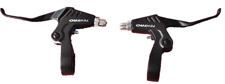—Ручки тормоза V- brake, алюминий, под 2 пальца, c регулировкой угла захвата троса. 180г, черные. RS