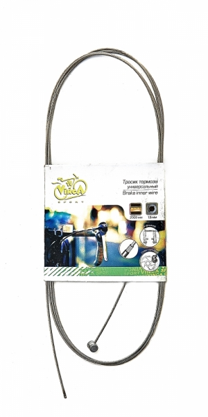 —Тросик тормоза VINCA SPORT 1.5*2000мм, головка тросика - 6х7, нержавеющая сталь инд.уп